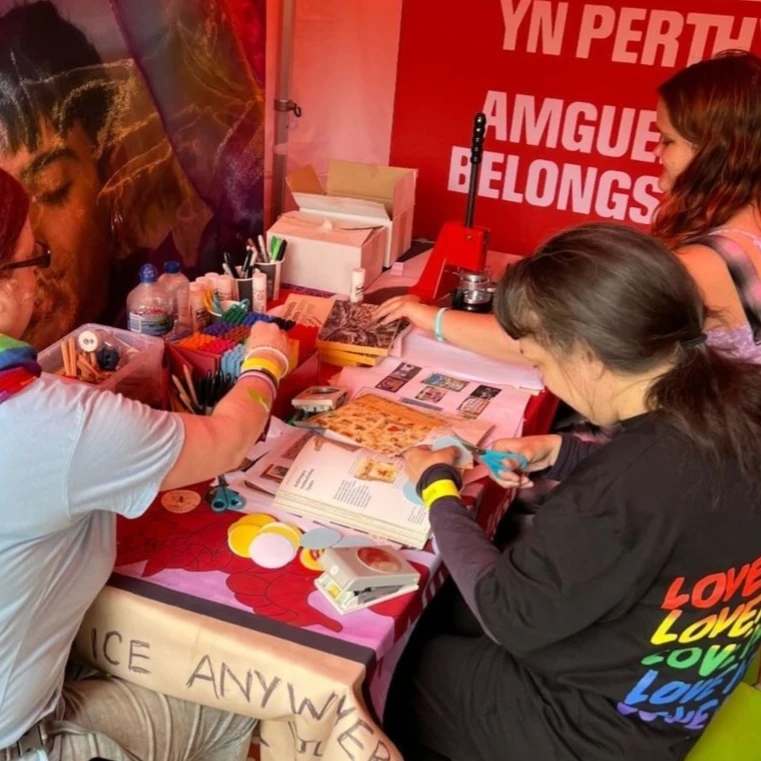 In June 2024 Kaja facilitated a workshop in partnership with Bloedd for Pride. This creative workshop explored queer solidarity and intersectional activism and was inspired by the museum archives.